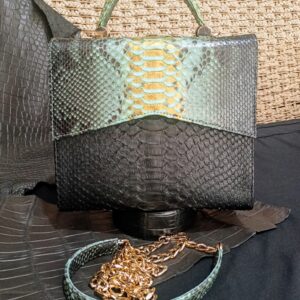Experience the elegance of our Borneo python skin purse, expertly handcrafted to express Indonesian art. Made from genuine Borneo python skin, this purse is coated with a protective layer to ensure durability in any season, rain or shine, summer or winter. Carry it by hand, or on your shoulder.