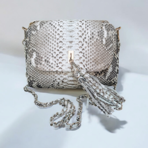 luxury women’s bag made of genuine phyton leather. This bag is handmade and lined with high-quality suede fabric and also combined with selected metal accessories. The outside of the bag is protected with a top coat so it is durable in all seasons.